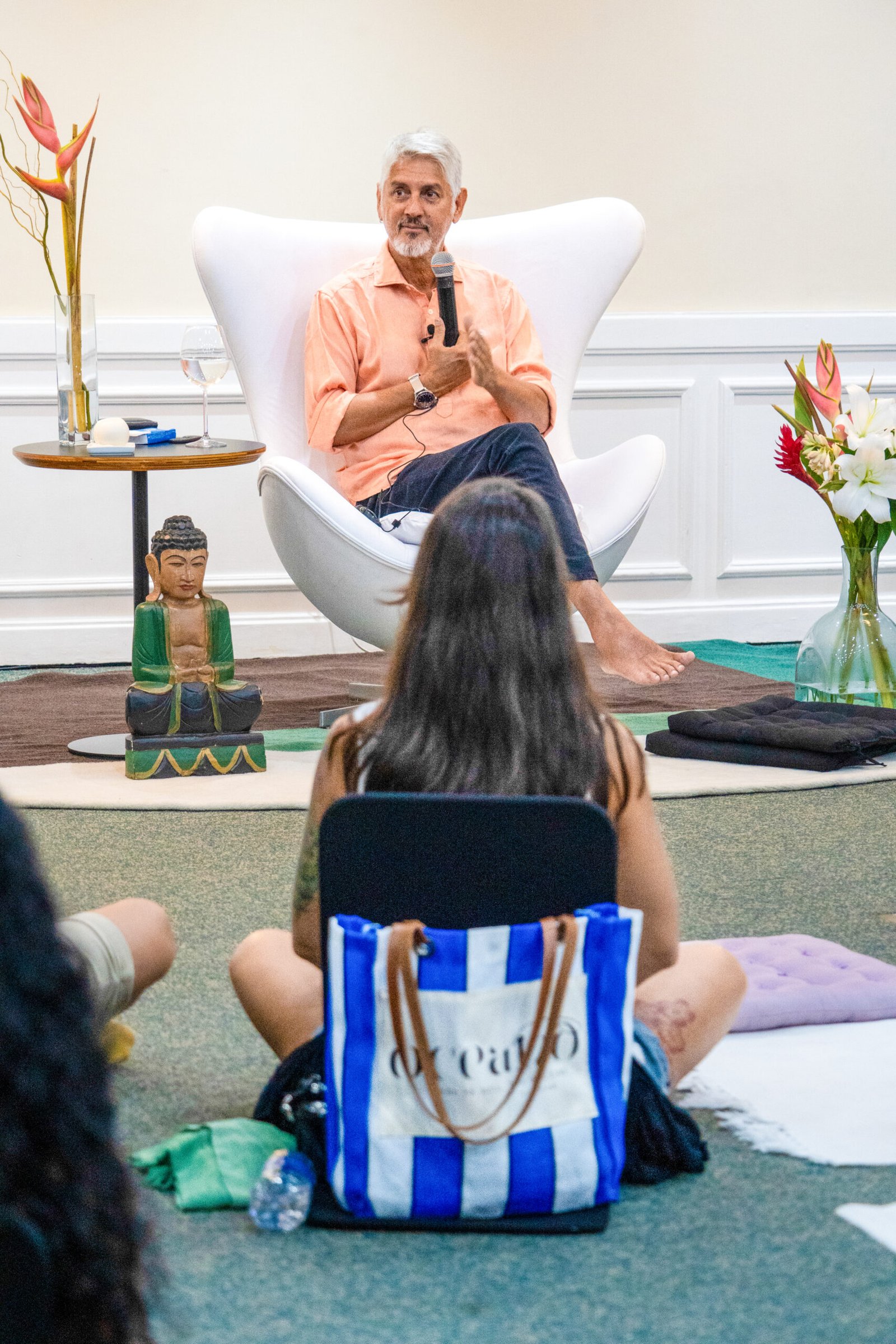 Satsang é Revelação, para aqueles que cansaram de buscar por respostas e só encontraram mais perguntas ou estados de êxtase passageiros. Estando diante daquele que “realizou”, o encontro é transmitido de maneira misteriosa – eis o significado da palavra Místico: aquele que sabe do mistério e o transmite simplesmente com sua presença. Diante da luz não há escuridão e torna-se evidente aquilo que é verdade e aquilo que é mentira sobre o que realmente somos. Um mestre é aquele que compartilha a Verdade, revelando-a única e singular a todos nós. Apenas esteja presente. Permita-se! E todos os seus questionamentos serão confrontados. Através das palavras Satyaprem nos guia rumo ao desconhecido: o mundo do silêncio como matriz de todos os sons, pensamentos e emoções, o qual sempre esteve presente, porém, oculto por idéias emprestadas e nunca comprovadas. Dar-se conta do engano e reconhecer o Mistério é a proposta de Satsang. Isso é estar diante de um iluminado.